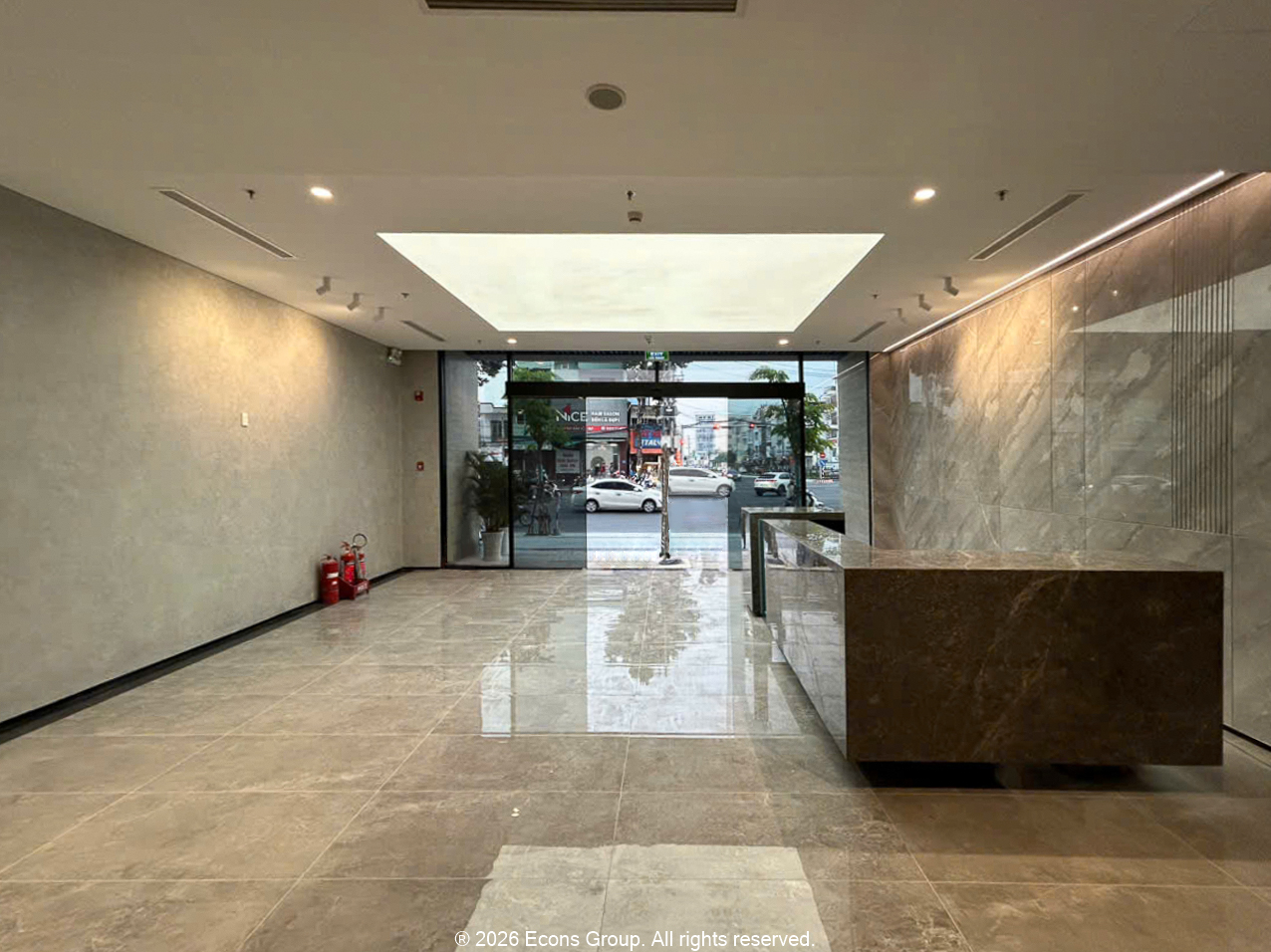 Sảnh đón và hành lang là khu vực tạo ấn tượng đầu tiên trong các dự án thi công văn phòng. ECONS GROUP lựa chọn giải pháp hoàn thiện với đá cao cấp, kết hợp hệ thống chiếu sáng âm trần được tính toán kỹ lưỡng, giúp không gian trở nên rộng rãi, sang trọng và chuyên nghiệp. Quá trình thi công được kiểm soát chặt chẽ về độ phẳng, mạch ghép và ánh sáng nhằm đảm bảo chất lượng hoàn thiện cao nhất.
